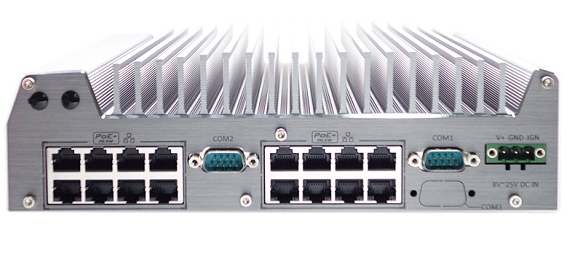 Similar to a NVR, Nuvo-3616VR features 16 PoE+ ports and built-in disk array for video recording.
